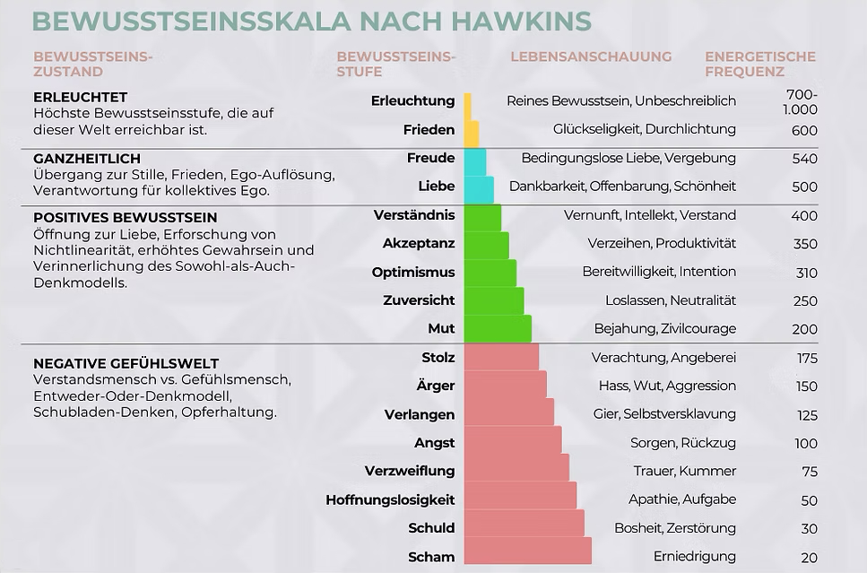 In seinem Buch «1000» präsentiert Ramaji eine umfassende „Landkarte des Erwachens“, die auf der bahnbrechenden Arbeit von David R. Hawkins in seinem Buch „Power vs. Force“ basiert und im Kontext des erfahrungsbasierten nicht-dualen Erwachens weiterentwickelt wurde. Diese «Landkarte» kann u.a. der Erkenntnis dessen, «wo du gerade stehst,» dienen und zeigt das Potential auf, «wohin die Reise geht.» Diese Klarheit kann dich dazu inspirieren und ermutigen, dich nicht mit weniger als dem vollständigen Erwachen zufrieden zu geben oder «bis ans Ende zu gehen.»